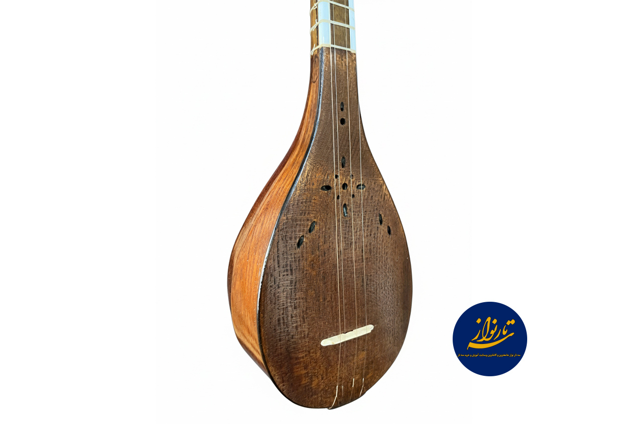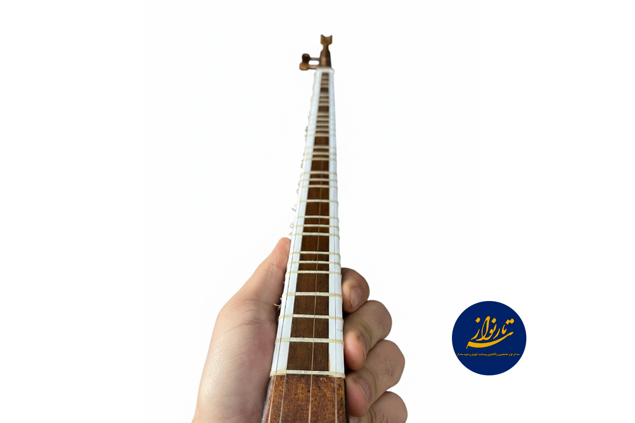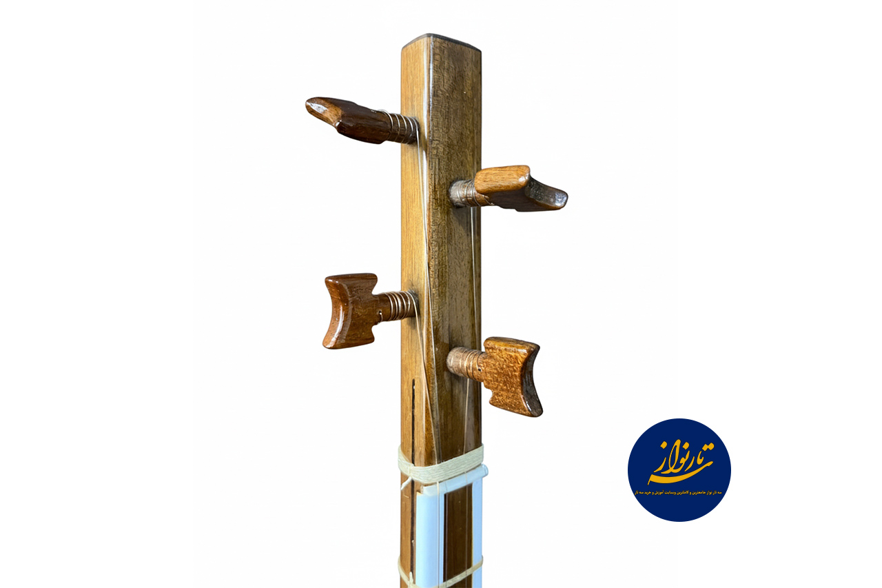 دسته ساز دارای تزیین بغل طرح استخوان است که علاوه بر جلوهی هنری، نشاندهنده دقت و ظرافت در ساخت میباشد. گوشیها و سرپنجه نیز بهصورت سنتی طراحی شدهاند تا هماهنگی کامل با فرم کلاسیک ساز حفظ شود. این تزیینات بدون ایجاد شلوغی ظاهری، هویت اصیل ایرانی ساز را بهخوبی نمایان میکنند و آن را به گزینهای مناسب برای علاقهمندان به سازهای سنتی تبدیل کردهاند.
